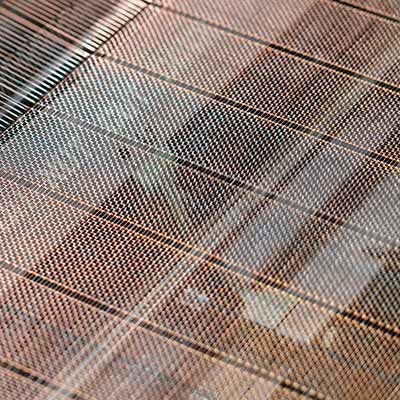 Additionally, IWM offers a Lockstitch Weave. Similar to a plain weave, the weft wires and warp wires are woven over and under one another. However, a lockstitch is achieved when placing two warp wires closer together when setting up the comb or reed, which separates the warp wires. These lockstitches can be positioned along the width of the mesh roll to prevent the fraying of edges when trimming or slitting the mesh to narrower widths.