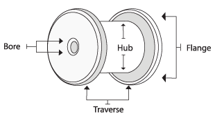 IWM P/N | Material | Flange O.D. (inches) | Traverse (inches) | Hub Diameter (inches) | Bore Diameter (inches) |