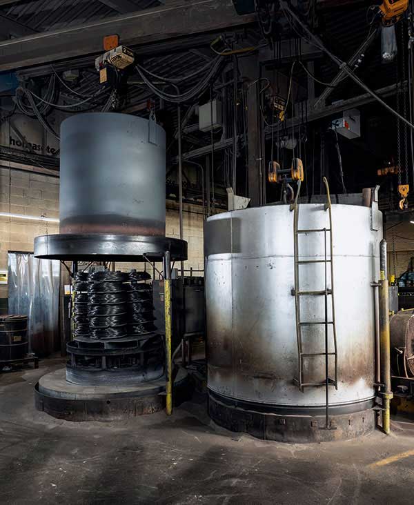 Annealing is the heat treatment process for increasing the metal’s ductility and reducing its hardness. At IWM, both annealing ovens and furnaces are utilized to stabilize, partially anneal, and fully (soft) anneal our wire. The annealing process requires precision control of temperature (heat & cooling), time, and atmosphere to ensure the desired mechanical properties of the wire. IWM process quality control and monitoring ensures consistent annealing processes to eliminate issues found during the annealing process such as microstructural inclusions, decarburization, and carbon sooting.
