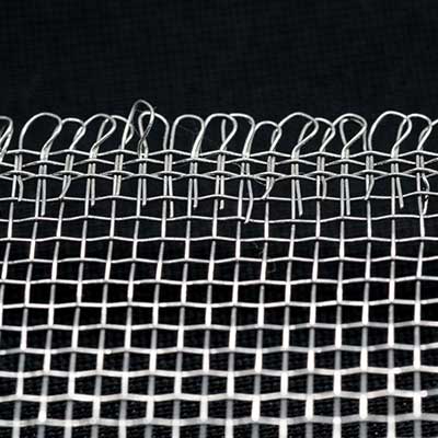 Additionally, IWM offers a Lockstitch Weave. Similar to a plain weave, the weft wires and warp wires are woven over and under one another. However, a lockstitch is achieved when placing two warp wires closer together when setting up the comb or reed, which separates the warp wires. These lockstitches can be positioned along the width of the mesh roll to prevent the fraying of edges when trimming or slitting the mesh to narrower widths.
