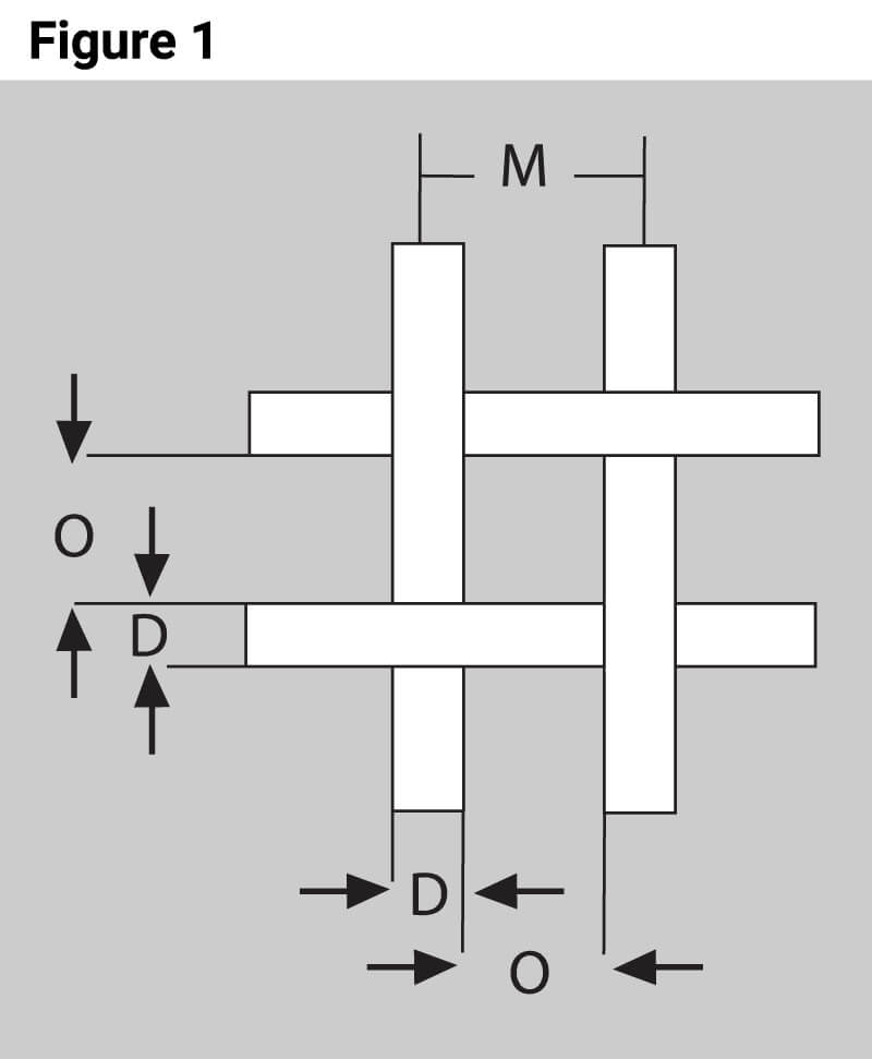 Pitch (Figure 1. M) is the sum of the aperture or opening size (Figure 1. O) and the wire’s diameter or gauge size (Figure 1. D). Details concerning wire gauges and the wire sizes IWM offers can be found in the Technical section concerning Wire Sizes.
